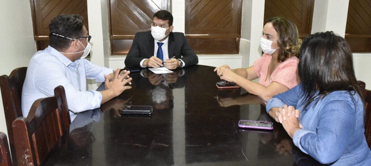 João Maria, Lawrence Amorim e Larissa Rosado em reunião sobre escola da Assembleia (Foto: CMM/Edilberto Barros)