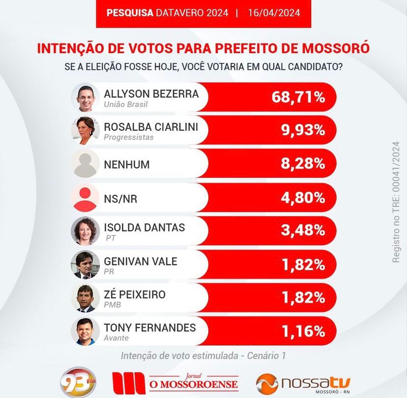 A primeira pesquisa eleitoral sobre a sucessão mossoroense em 2024 foi divulgada nesta terça-feira, 16, no programa Observador Político, transmitido ao meio dia pela Rádio 93 FM/ Nossa TV.