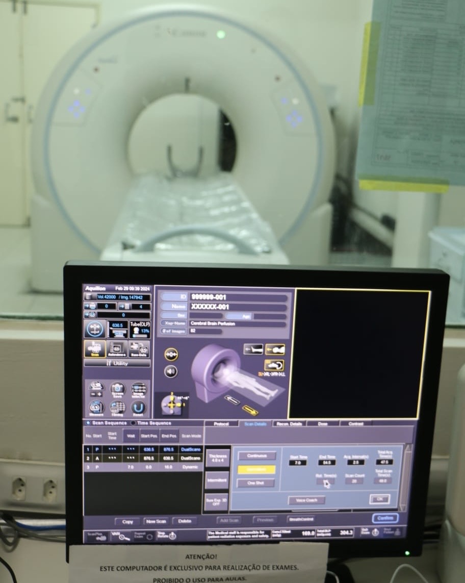 O equipamento foi entregue no fim de 2023. Desde então, o antigo equipamento foi retirado, a área de instalação foi readaptada, o novo tomógrafo instalado e testado, assim como foi feito um período de treinamento da equipe responsável pela operação dos exames na unidade.