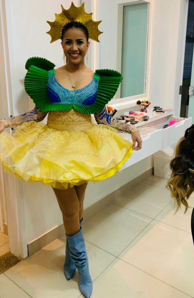 Destacamos também o trabalho primoroso do artista Elio D’angelis, que assinou o figurino da cantora Caroline Melo. O sol, as folhas e troncos das carnaúbas, evidenciados pelo uso de palhas natural, as cores da bandeira de Mossoró … deram o tom ao figurino, batizado de “Carnaúbas de Mossoró”. Elio mostrou que o artista não tem limites e nem deve. Mais uma vez, parabéns, Elio! Você é mesmo um grande artista.