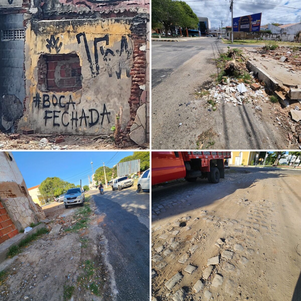 O centro histórico de Mossoró, nas ruas Dr. Almeida Castro e Trinta de Setembro, próximo ao Museu Municipal Lauro da Escóssia, enfrenta problemas que comprometem sua imagem e potencial econômico: crateras nas vias, ausência de pavimentação, calçadas irregulares, iluminação precária e acúmulo de lixo evidenciam o abandono da prefeitura na região.