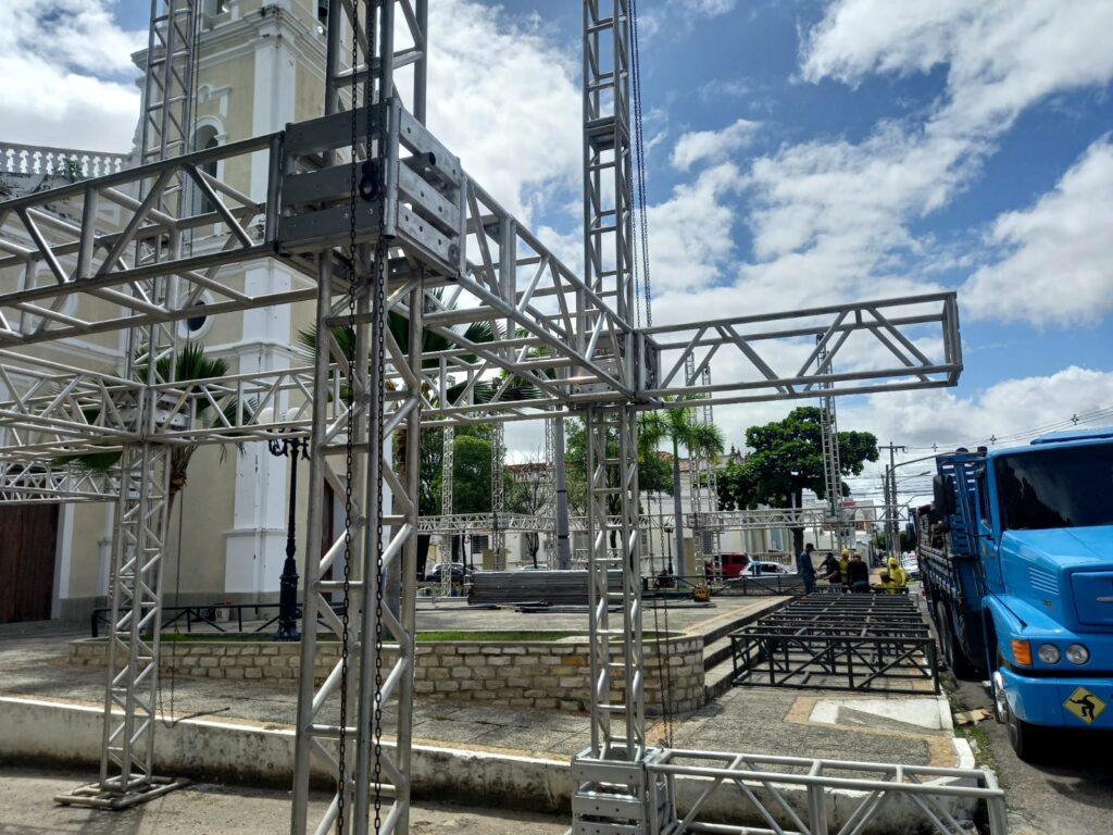 Com nova proposta, a montagem da estrutura para o espetáculo “Chuva de Bala no País de Mossoró” começou a ganhar forma. O musical é uma das maiores exibições teatrais a céu aberto do Brasil, completando nesta edição 21 anos.